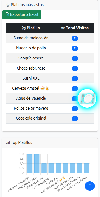 - Reportes de clics por platillo